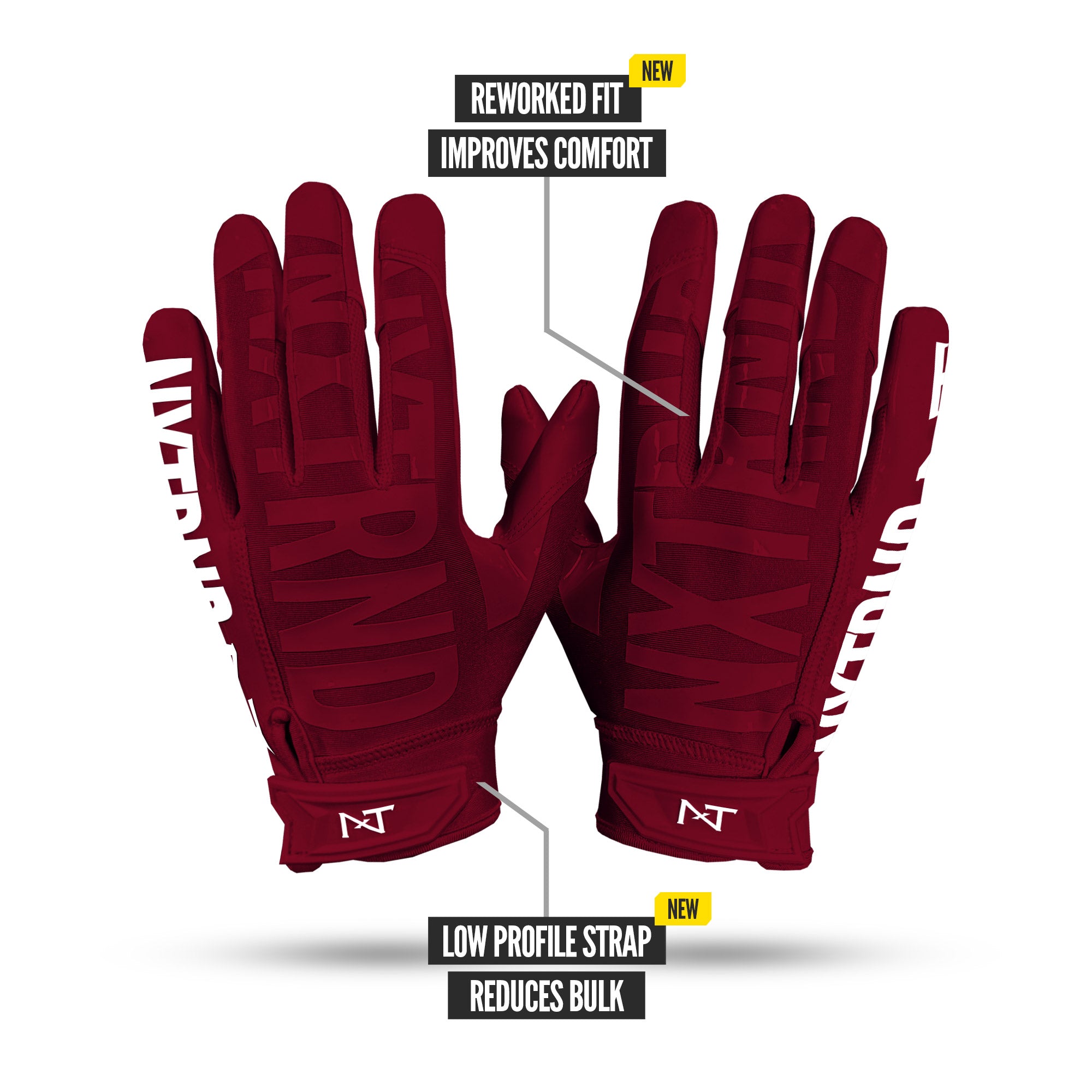 Play like the pros with NXTRND G1 Pro® football gloves: reworked fit. shorter finger caps for better ball feel. and updated stitching to reduce bulk.