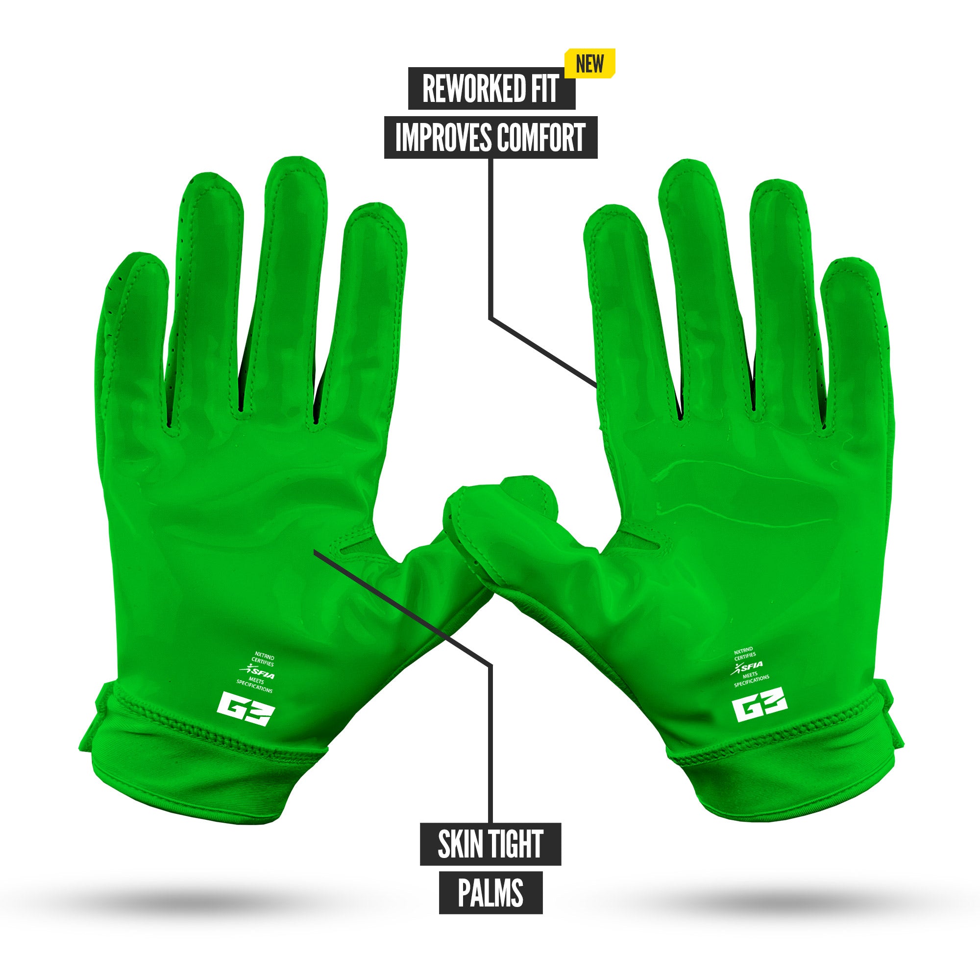 Play like the pros with NXTRND G3 Pro® Padded football gloves: updated palm stitching for better ball feel and ventilation holes for improved breathability