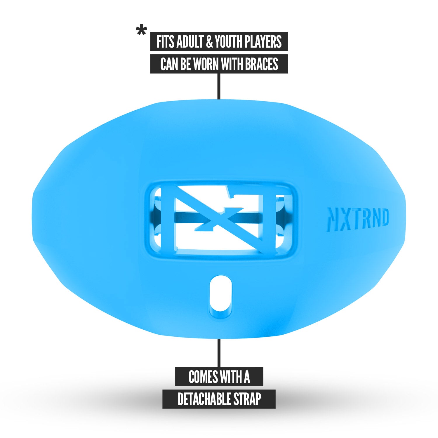 Introducing the Nxtrnd One® Mouthguard. Featuring a removable silicone strap and comfortable X-pattern bite pads.