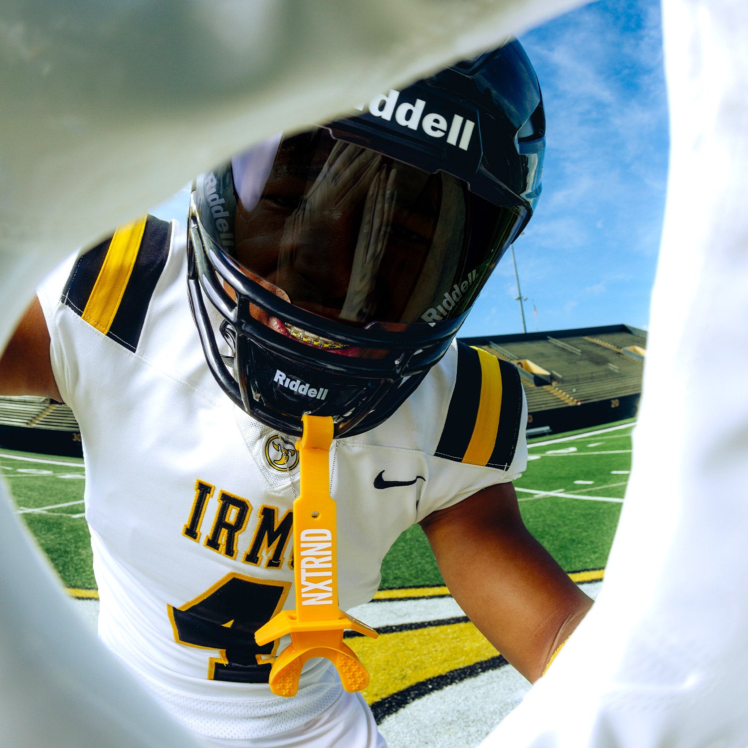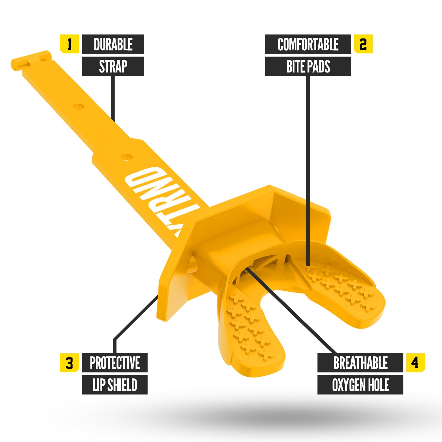 Introducing the Nxtrnd Two® Mouthguard. Featuring a permanent wide silicone strap and comfortable X-pattern bite pads.